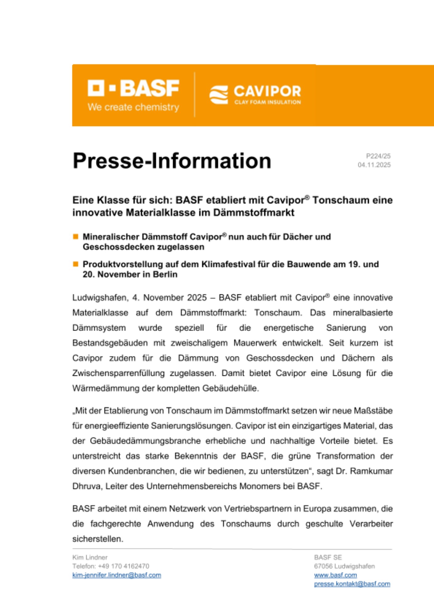 Cavipor® ist das weltweit erste 3-Komponenten-System zur Herstellung eines mineralbasierten Ortschaums. Es wurde während acht Jahren intensiver Forschung mit über 5000 Versuchsrezepturen in der BASF entwickelt und umfangreich patentiert. Das System ist in Europa bauaufsichtlich zugelassen (ETA-19/0240).